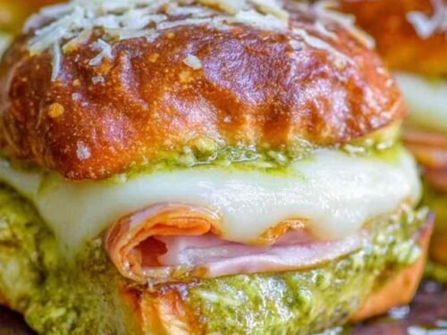 These Canadian Bacon and Havarti Cheese Sliders are the kind of hot, cheesy pull-apart sandwiches that disappear the moment they hit the table. Packed with savory Canadian bacon and melty Havarti cheese, all finished with a buttery pesto glaze, they are ready in just 20 minutes.