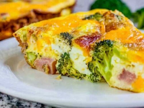 Pro tip: this cheesy ham and broccoli frittata works great for meal prep. Make it on Sunday and you have a protein-packed breakfast or lunch ready for the whole week.