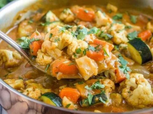 A hearty and flavorful one-pot vegetable curry made with cauliflower, carrots, zucchini, and creamy coconut milk. Ready in 40 minutes with just 6 simple ingredients.
